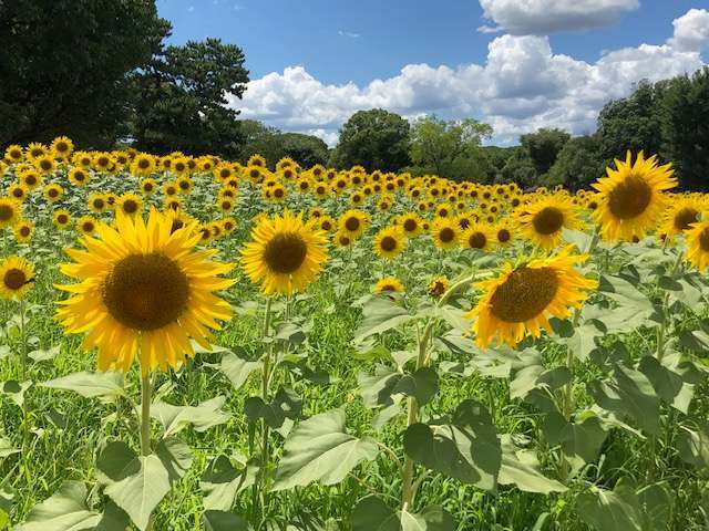 暑い中でも様々な種類の向日葵が元気に太陽に向かって咲いておりました。